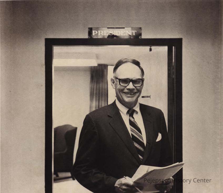 A B/W photographic view of A. LeRoy Greason, president of Bowdoin College. This photo was published 7/27/1981.
