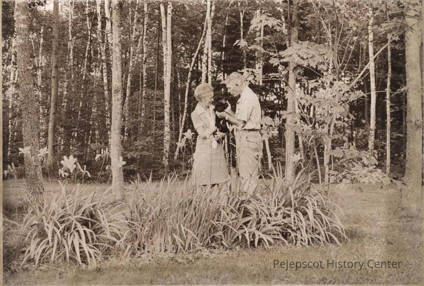 A B/W photographic view of Admiral and Mrs. Mayo A. Hadden Jr. They are holding a dog.