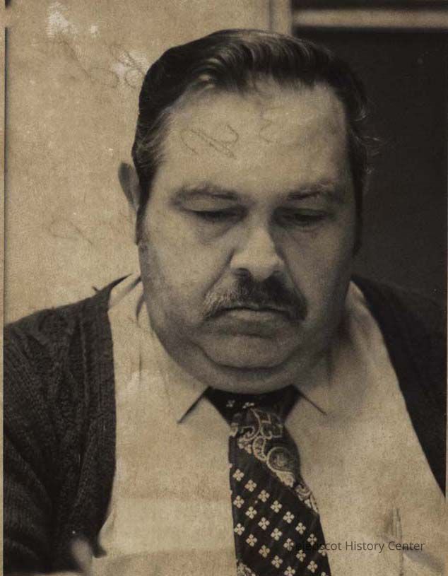 A B/W photographic view of Alcide Bois. Marked on the back, "SAD 75 Board 3 year". This photo was published 3/2/1976.