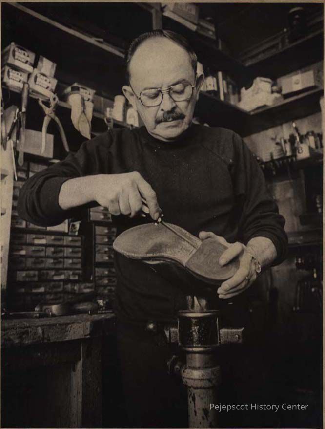 A B/W photographic view of Alcide Paquette a shoe repairman.. This photo was published 1/5/1978.