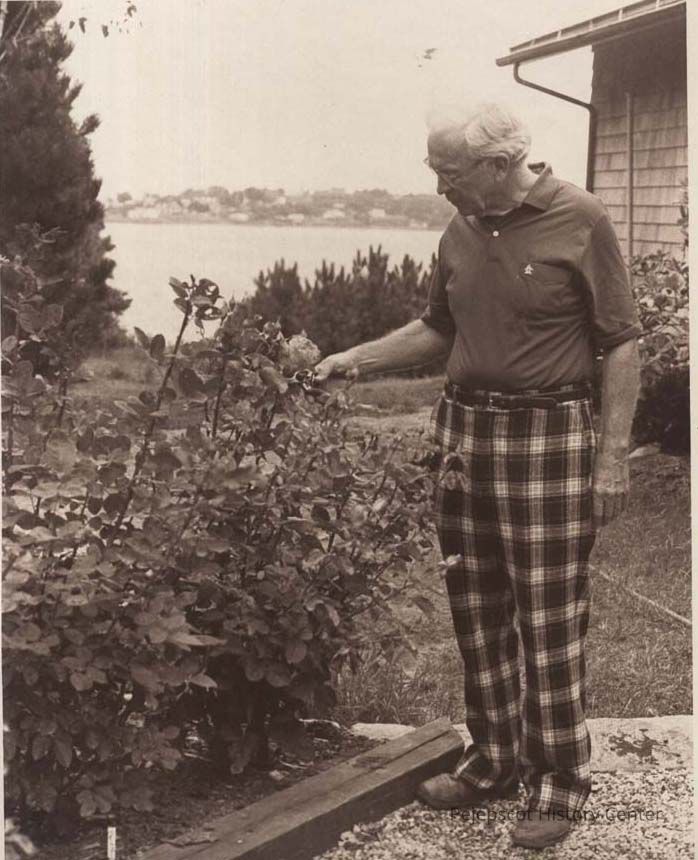 A B/W photographic view of Alfred Senter in his rose garden.