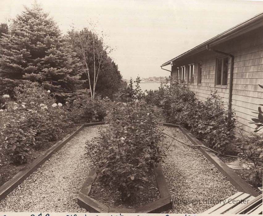 A B/W photographic view of Alfred Senter's rose garden.