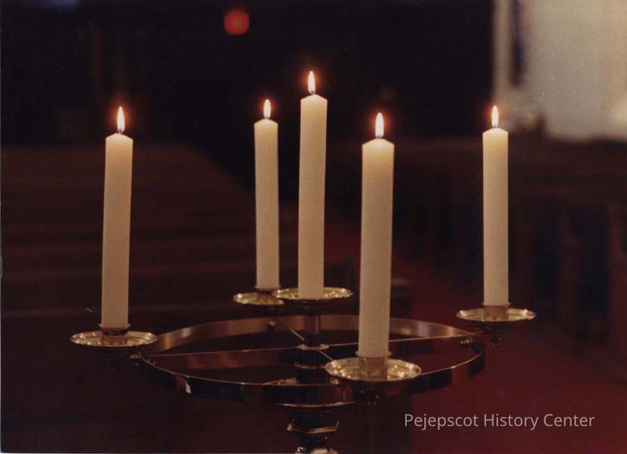 A color photographic view of an Advent Wreath of candles. This photo was published 11/26/1990.
