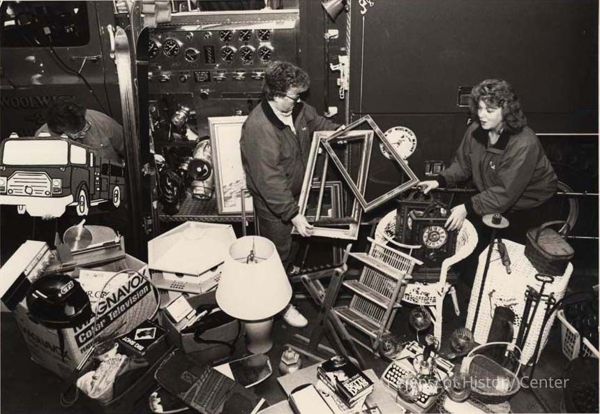 A B/W photographic view of an antique sale. This photo was published 10/23/1992.