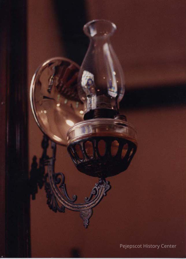A color photographic view of an old oil lamp at the West Harpswell Baptist Church.. This photo was published 1/25/1991.