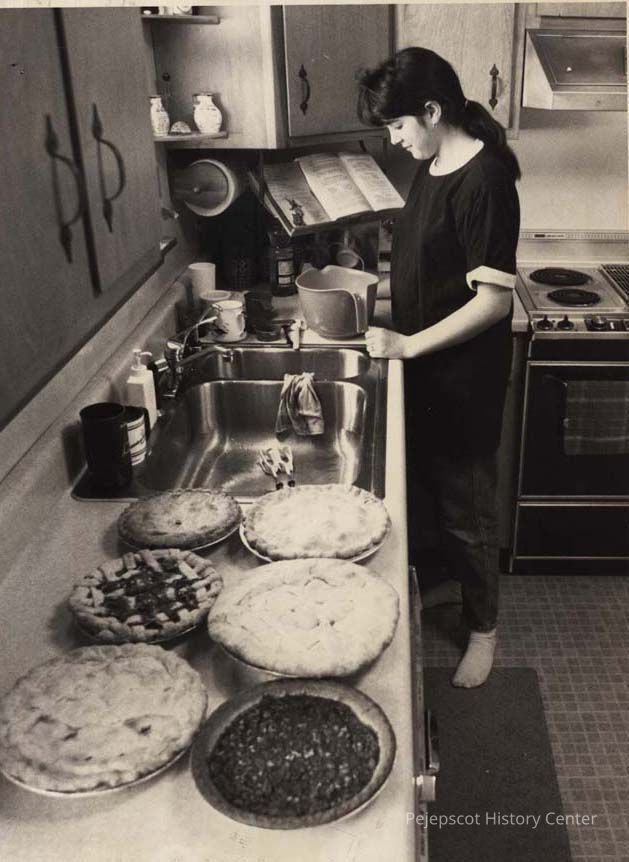 A B/W photographic view of Andrea Labbe. Cooking for fund raiser. This photo was published 5/18/1992.