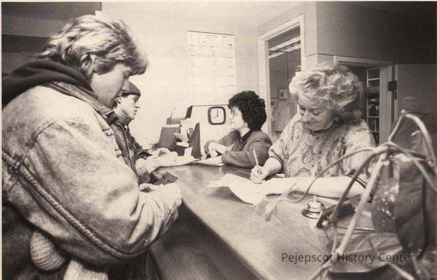 A B/W photographic view of Antonio DiPicho getting his clamming licence.Also in the picture are Town Clerk Mary Wescott and Mary Lou Halle. This photo was published 3/3/1992.