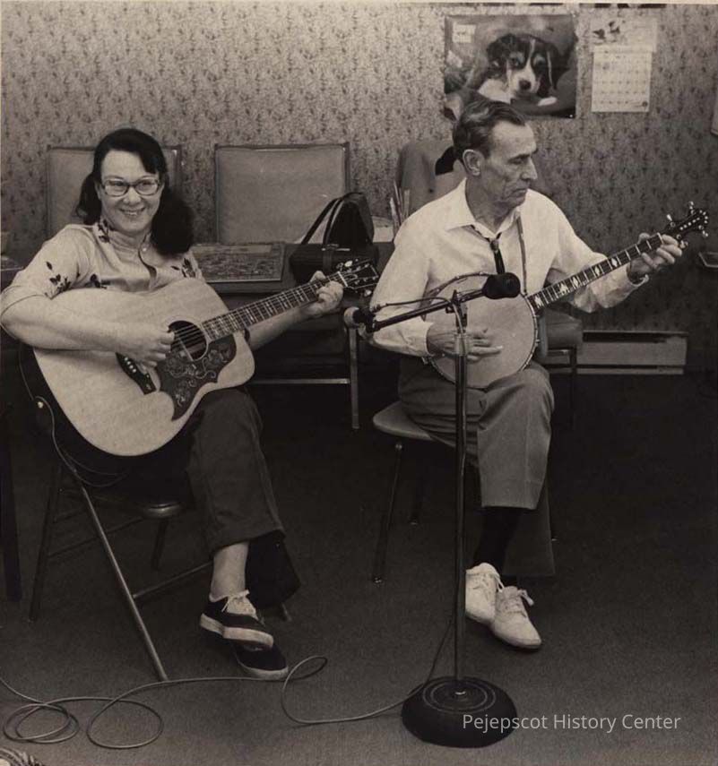 A B/W photographic view of Audrey Anderson accompanied by her husband, Fred.