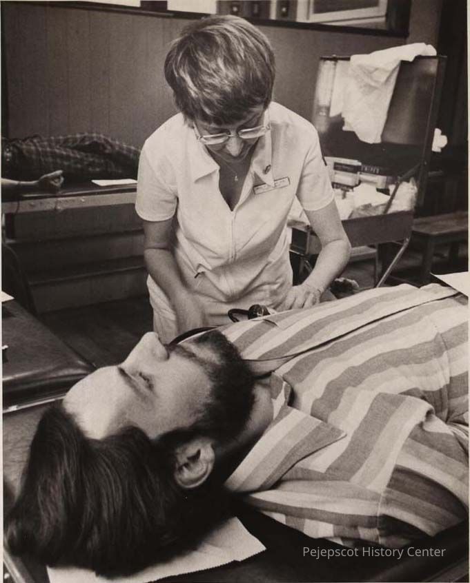 A B/W photographic view of Bath blood donors.
