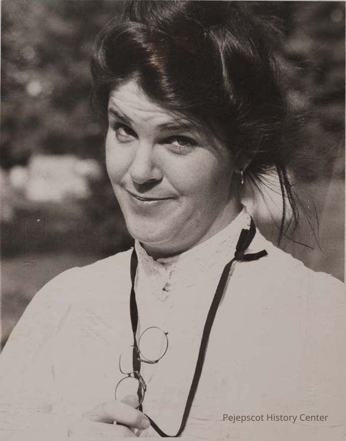 A B/W photographic view of Beth Dunlap who starred in "Tidewater" at the Unitarian Universalist Church on Pleasant Street. it is a two act play about Sarah Orne Jewett..
