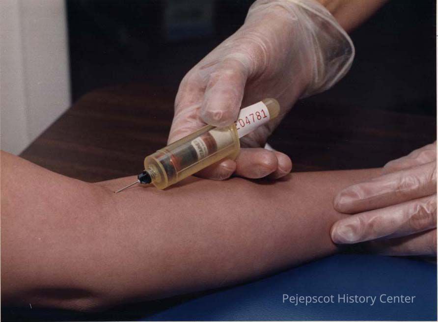A photo view of blood being taken for Aides testing. 10/24/1991