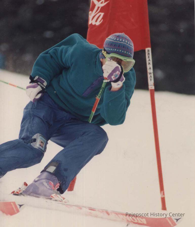 A color photographic view of Bobby Waddle of Harpswell, skiing. This photo was published 4/6/1992.