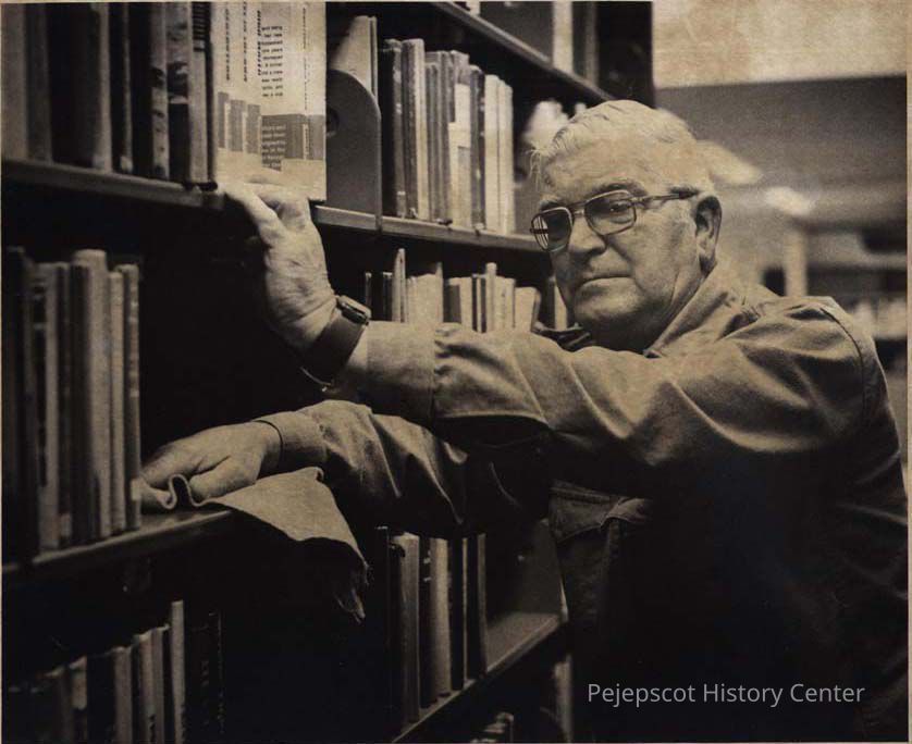 A B/W photographic view of Bruce M. Libby custodian at the Curtis Memorial Library. This photo was published 1/27/1981.