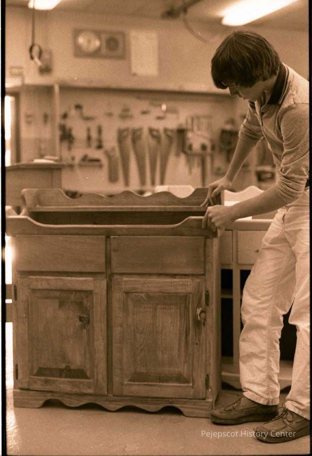 A B/W photographic view of Brunswick High School students working on a Dry Sink, Inc. project. 10/1979.Collection