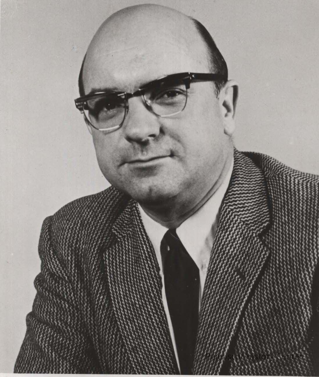 A B/W photographic view of C. Bruce Wright.