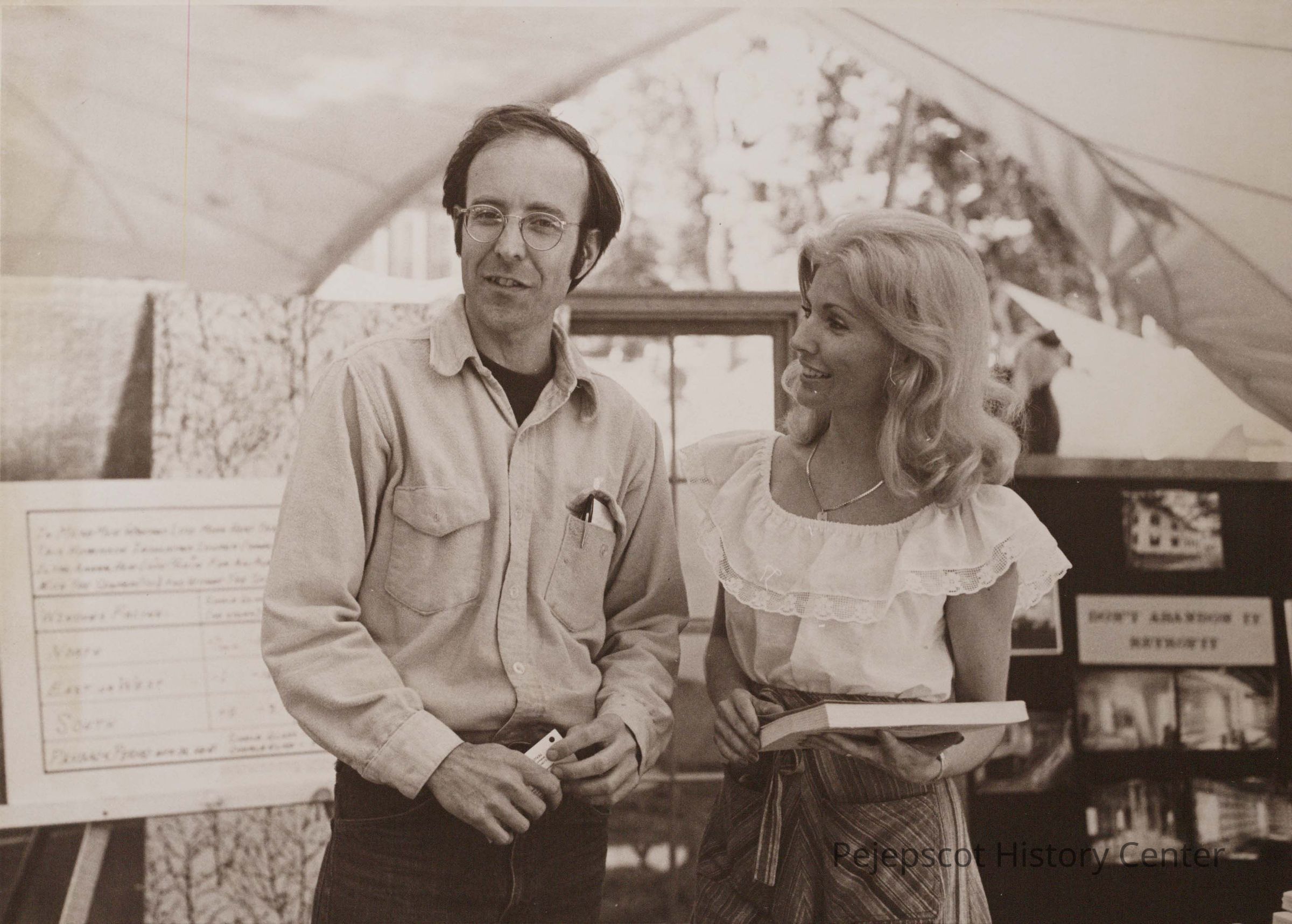 A B/W photographic view of Charles Wing and (Mrs. William) Diane Cohen, wife of US Senator Bill Cohen.