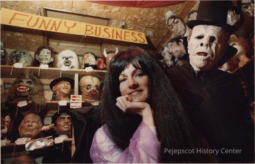 A color photographic view of Carolyn and Bill Noyes in a costume store. This photo was published 10/31/1991.