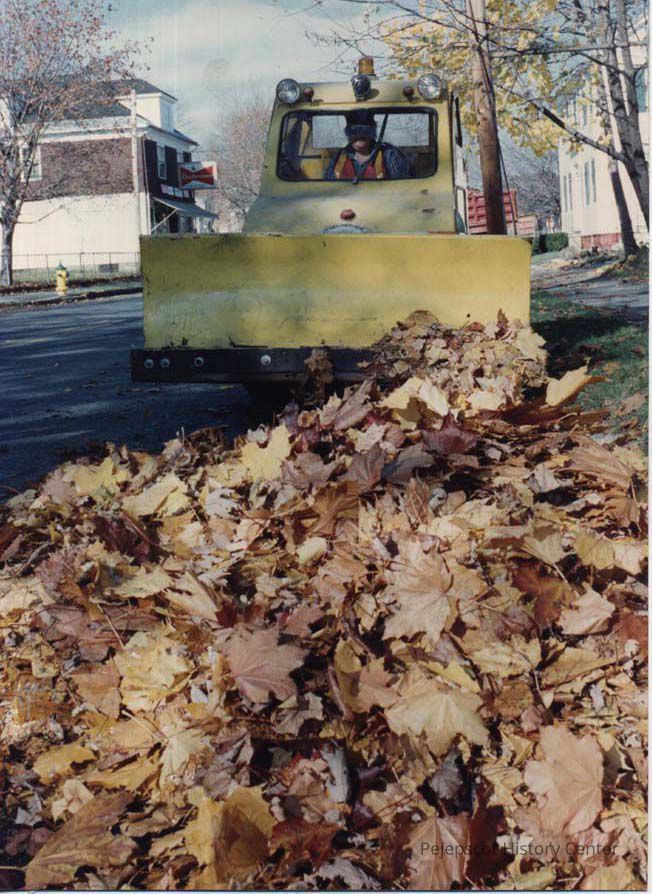 A color photographic view of cleaning up leaves on Pleasant Street. This photo was published 11/6/1989.