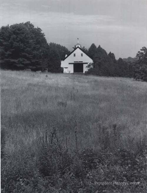 A B/W photographic view of a barn in Cundy's's Harbor.