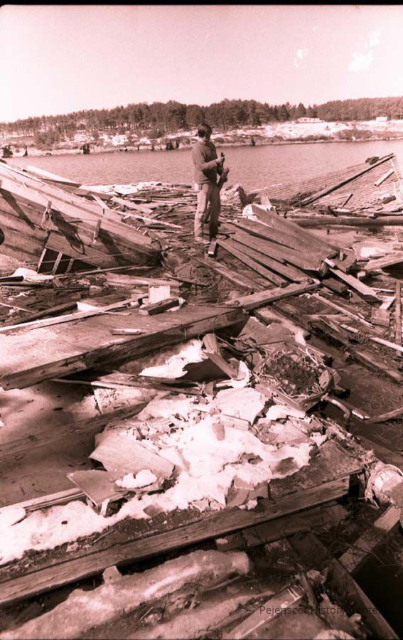 A color photographic view of debris at Bailey Island. 3/10/1978.