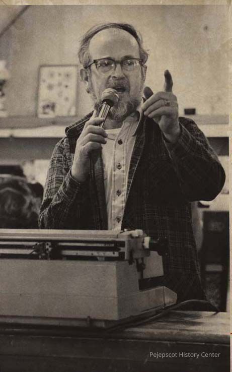 A B/W photographic view of Don Thistle, auctioneer. This photo was published 4/12/1979.