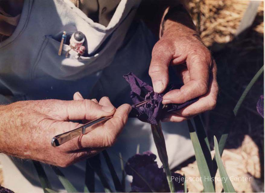 A photo view of Dr. McEwen working on one of his flowers. 7/3/1990.