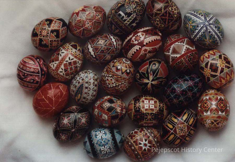 A color photographic view of Easter eggs. This photo was published 3/29/1991.