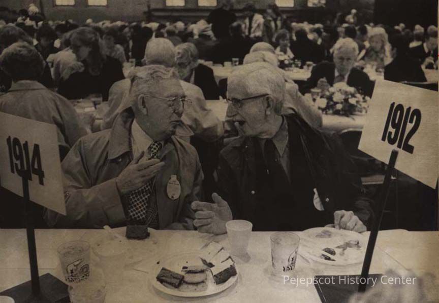 A B/W photographic view of Elden Barbour and Allan Hall class of 1920. This photo was published 5/29/1979.