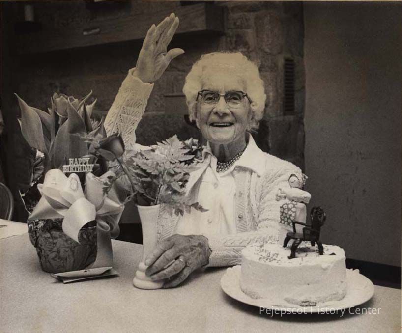 A B/W photographic view of Ellen Jordan celebrating her 100th birthday. This photo was published 1/12/1979