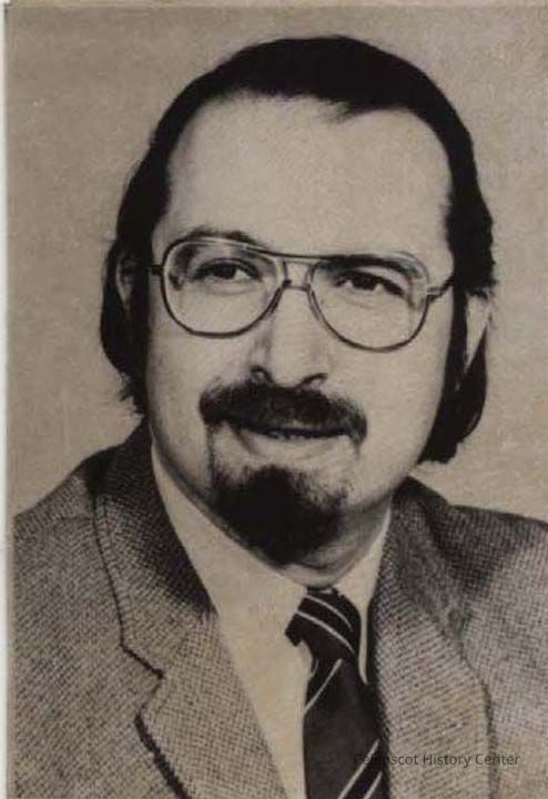 A B/W photographic view of Professor Elliott Schwartz is promoted to the rank of full professor by Bowdoin College.. This photo was published 3/25/1975.
