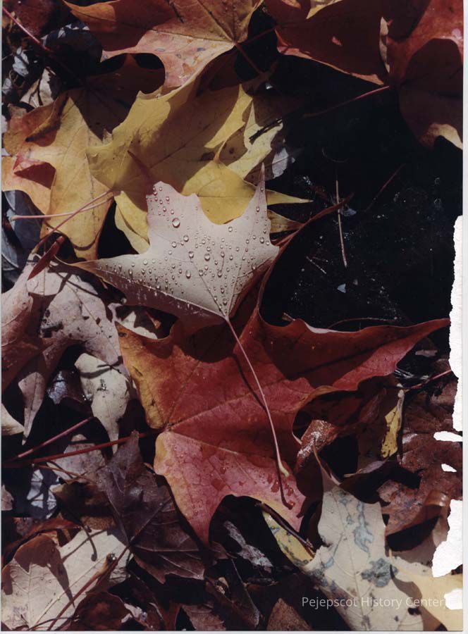 A color photographic view of fall leaves. This photo was published 10/13/1989.