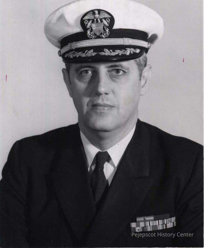A B/W photographic view of Commander Ferdinand E. Slejzer assumed duties as the Catholic Chaplain at BNAS. This photo was published 3/6/1970.