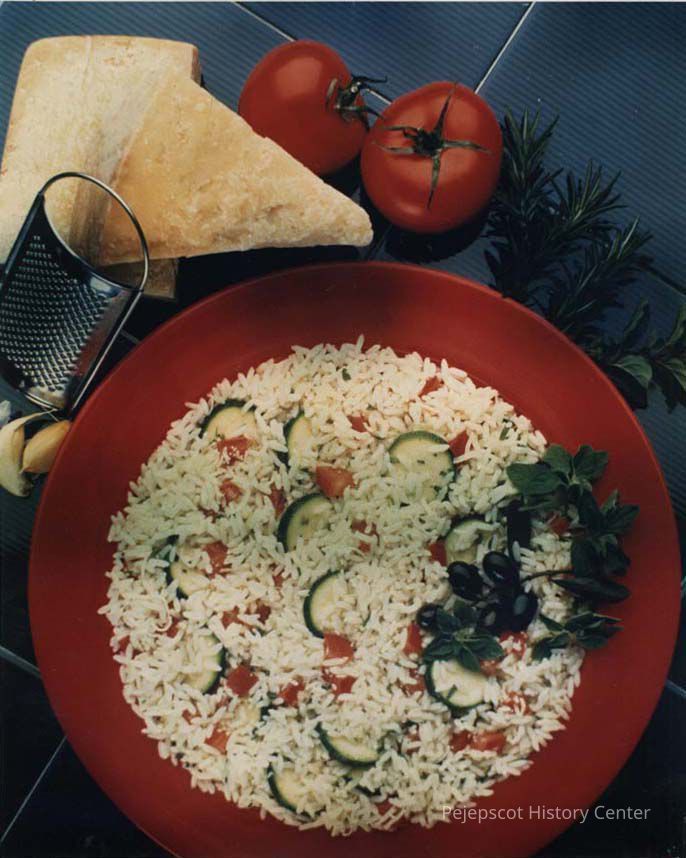 A color photographic view of food on a plate. This photo was published 6/25/1990.