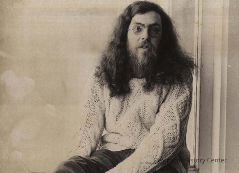A B/W photographic view of Gary Lawless, who with his partner Elizabeth Leonard opened Gulf of Maine/Friends of the Earth bookstore.