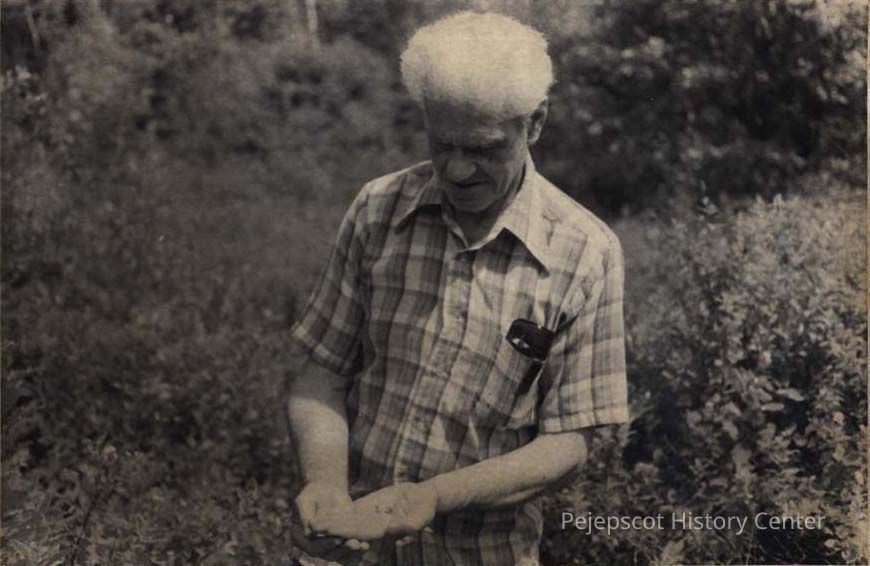 A B/W photographic view of Geoffrey Lachance, blueberry grower. This photo was published 8/10/1981.