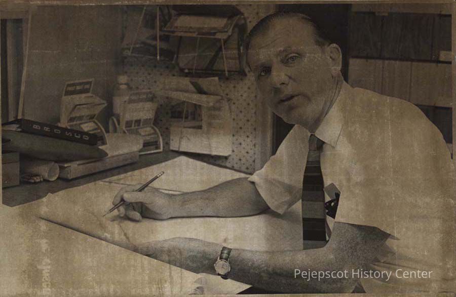 A B/W photographic view of Gordon G. Noe, closed his store, Noe's Hardware and Appliances and is joining Brunswick Coal & Lumber.