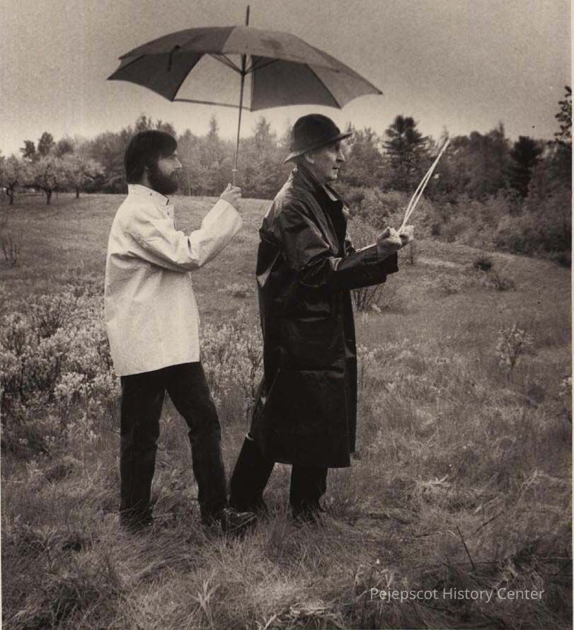 A B/W photographic view of Harvey Howells dowsing.