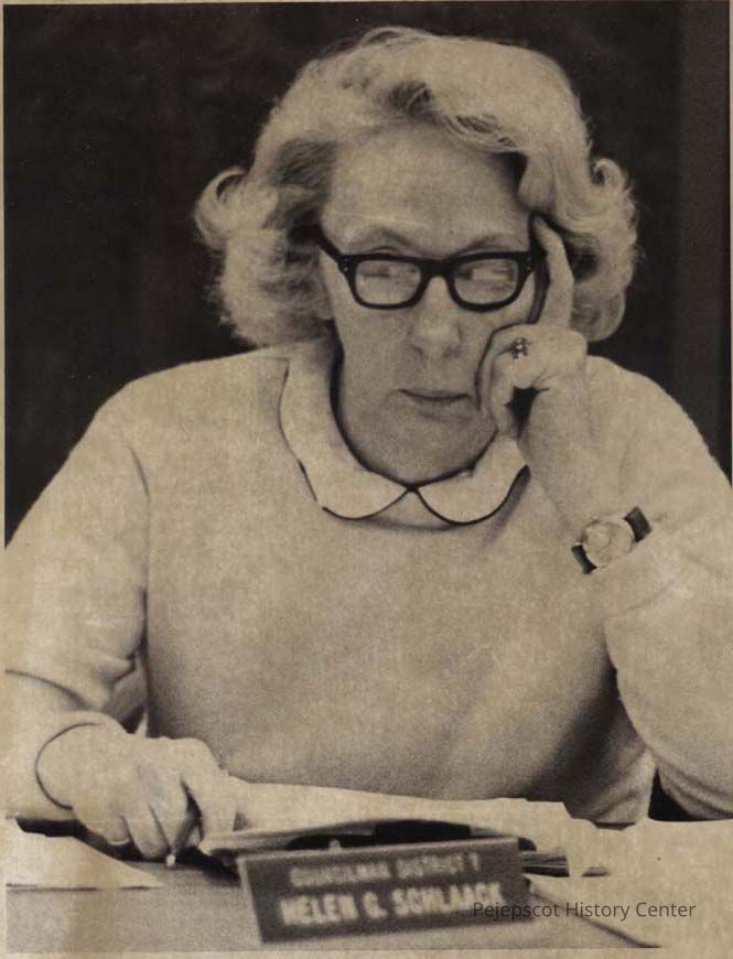 A B/W photographic view of Helen Schlaack. This photo was published 4/1975.