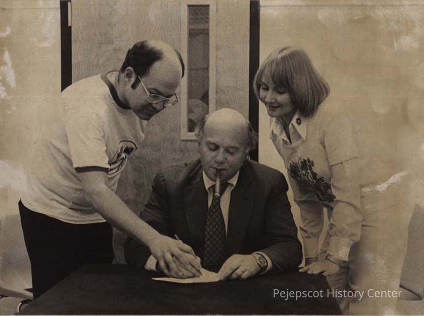 A B/W photographic view of Herbert Paris, administrator of Regional Memorial Hospital. Others in the picture are Peter Evans and Pamela LaJeunesse.. This photo was published 11/15/1979.