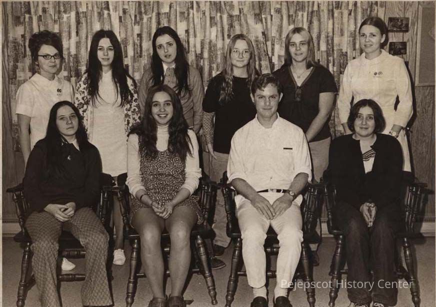 A B/W photographic view of home nursing grads and teachers.