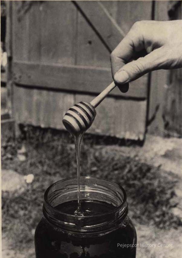A B/W photographic view of honey at the Clayman's. This photo was published 9/14/1981.