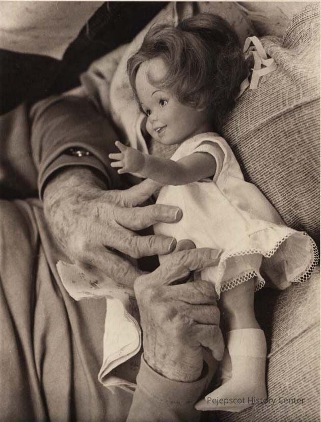 A B/W photographic view of Ida Oliver's hands and doll. This photo was published 1/26/1981.