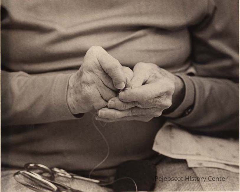 A B/W photographic view of Ida Oliver's hands as she threads a needle.. This photo was published 1/26/1981.
