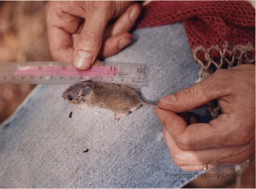 A photo view of Jack Witham measuring a mouse. 8/23/1991.