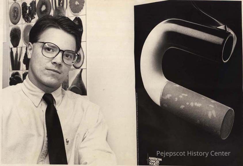 A B/W photographic view of Jeff Davis with an anti smoking ad. This photo was published 11/17/1992.