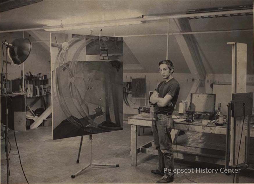 A B/W photographic view of Joe Nicoletti, artist. This photo was published 9/4/1979.