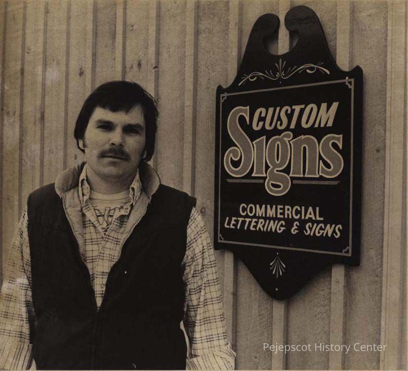 A B/W photographic view of John Marsh who is opening a new business in Topsham, "Custom Signs". This photo was published 4/18/1980.