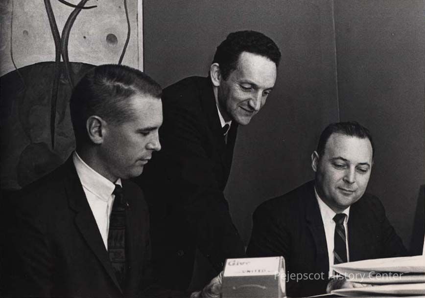 A B/W photographic view of John P. Montgomery, Donald M. Pouich and Paul Karass.