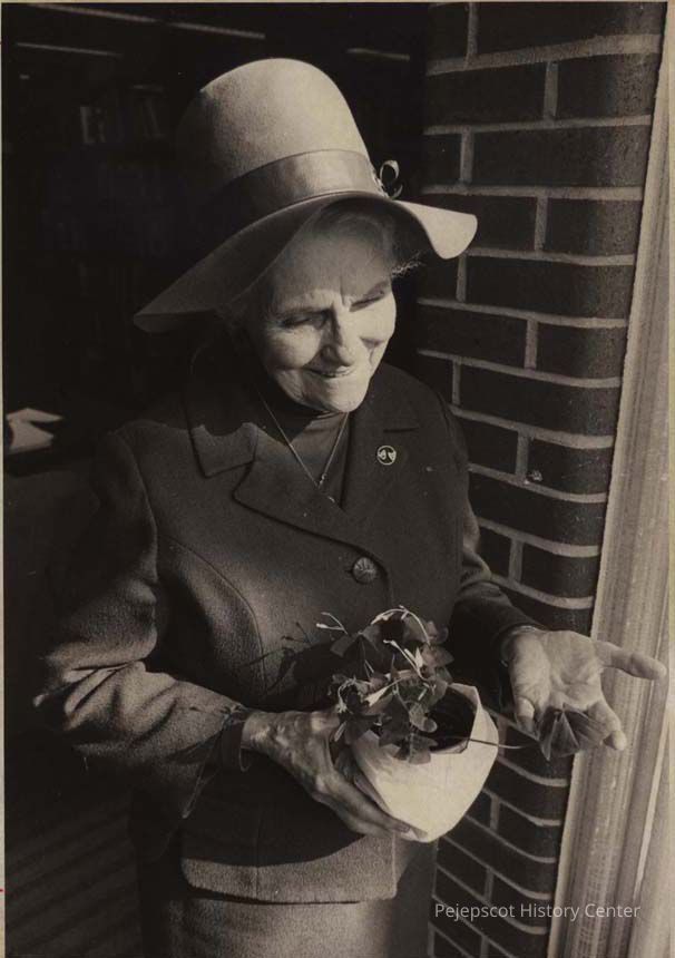 A photo view of Lori Fleming carrying a real shamrock. 3/16/1979