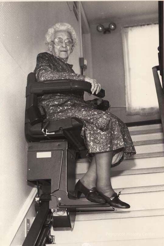A B/W photographic view of Lulu Foss at the Stevens Home. This photo was published 5/5/1992.